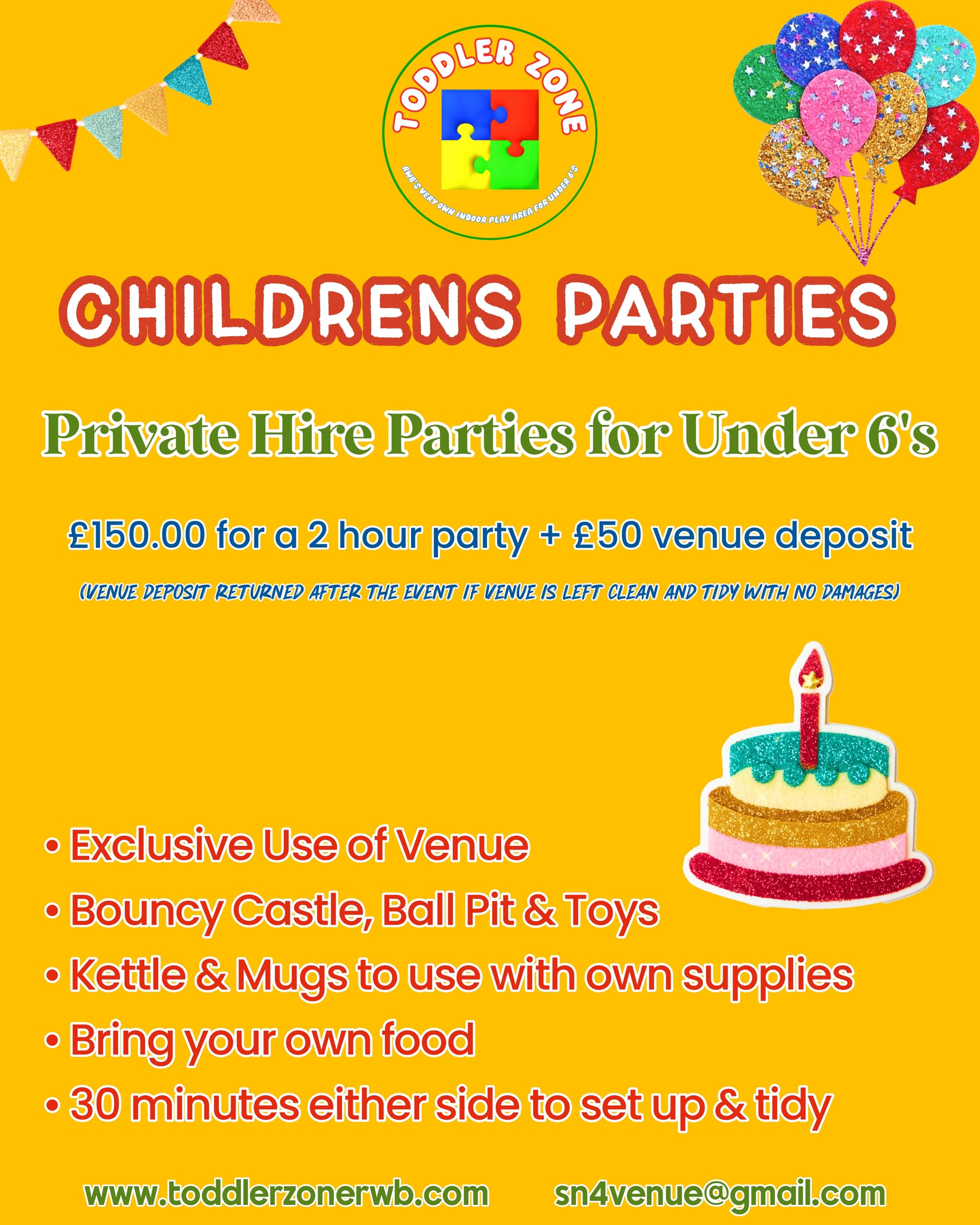 Hire Toddler Zone to celebrate your child's Birthday. Enjoy your 2 hour party with everything under one roof.